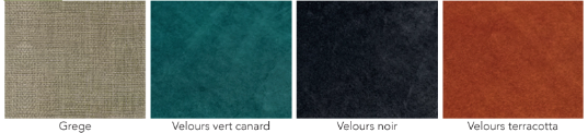 Elle est disponible en velours ou en polyester grège.