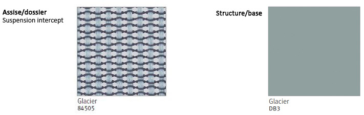 - dossier haut et assise suspension (60 % élastomère et 40 % polyester) glacier,
