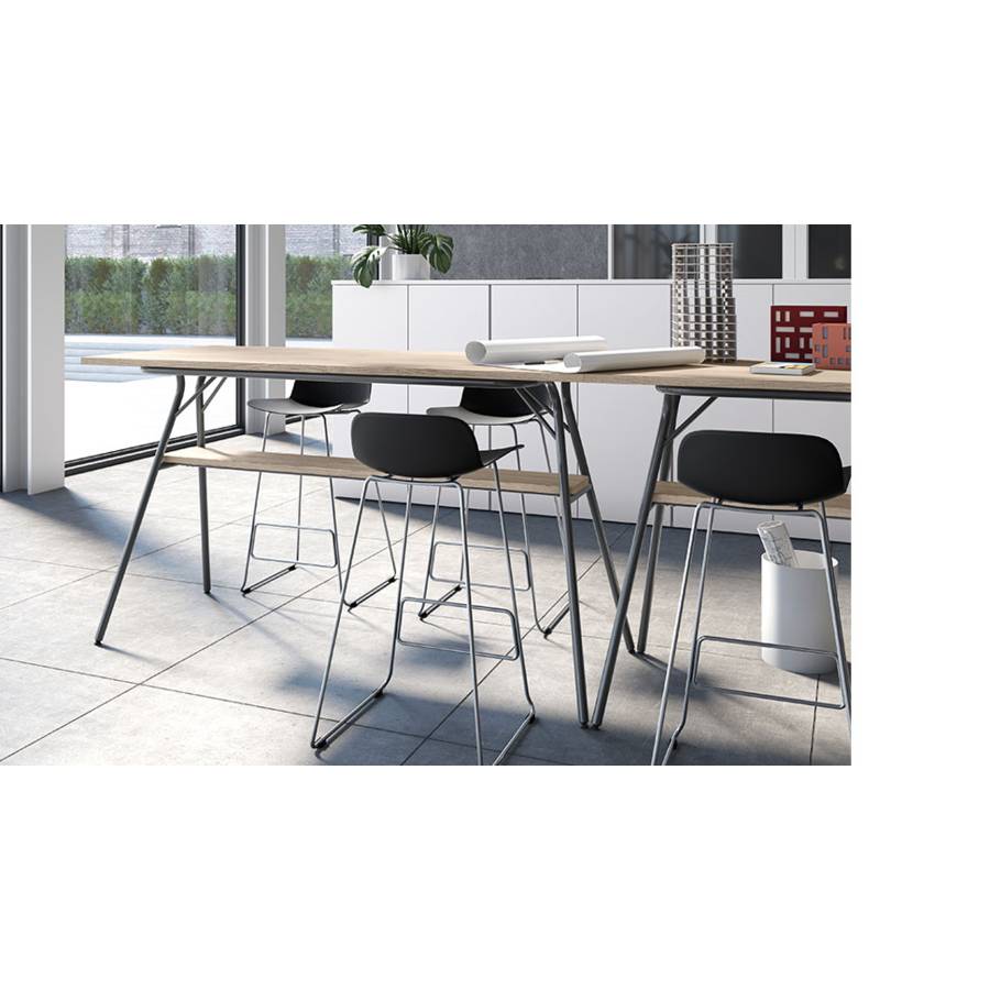 Elle est composée d'une structure métallique sans repose pieds avec 4 pieds métal en acier. 4 coloris sont disponibles : noir, argent, blanc et graphite et d'un plateau mélaminé ou stratifié d'une épaisseur de 25 mm....