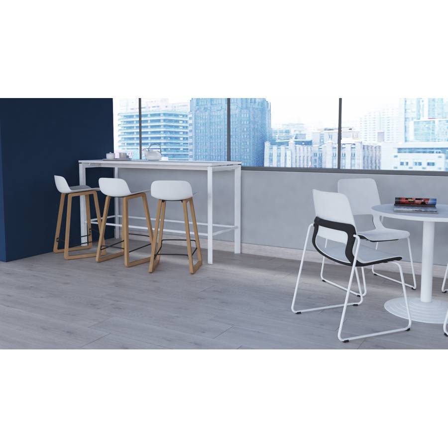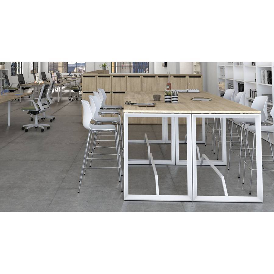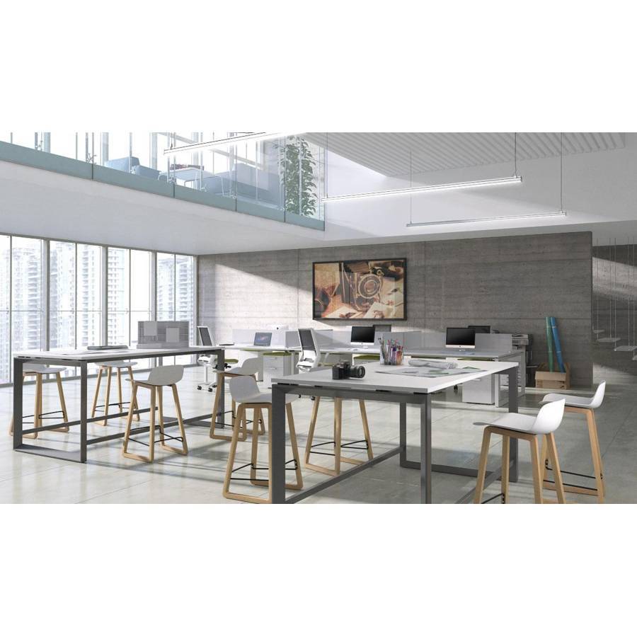 Elle est composée d'une structure métallique avec repose pieds et un pied carré de chaque coté en acier. 4 coloris sont disponibles : noir, argent, blanc et graphite et d'un plateau mélaminé ou stratifié d'une...