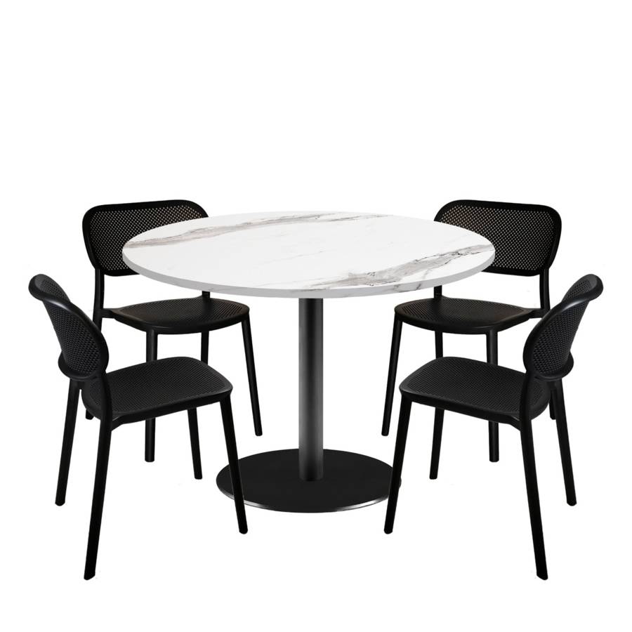 Lot table Ø120cm & 4 chaises - pied noir plateau marbre blanc | mobilier collectivités