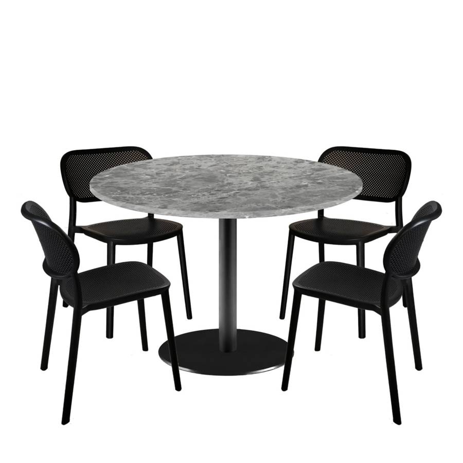 Lot table Ø120cm & 4 chaises - pied noir plateau marbre nabu | mobilier collectivités