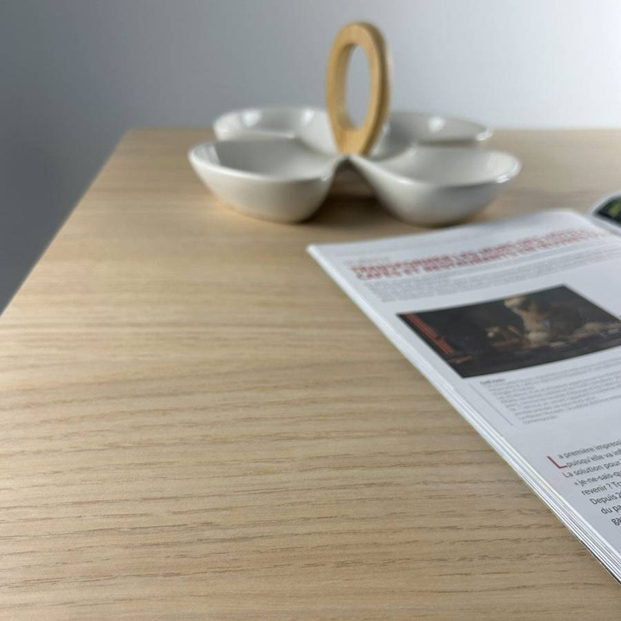 Plateau de table design, fabriqué en France, conçu pour un usage intérieur professionnel. En bois aggloméré stratifié, il est résistant et facile d'entretien. Idéal pour les collectivités.