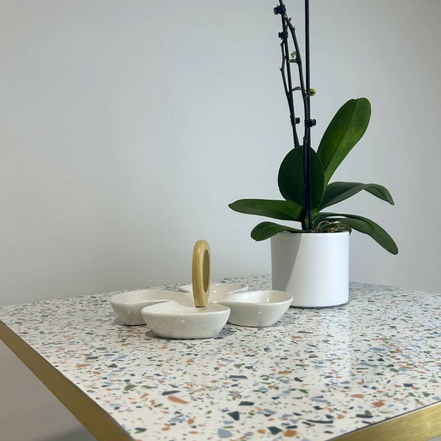 Plateau de table 70x70cm Terrazzo Spectra & laiton | mobilier collectivités