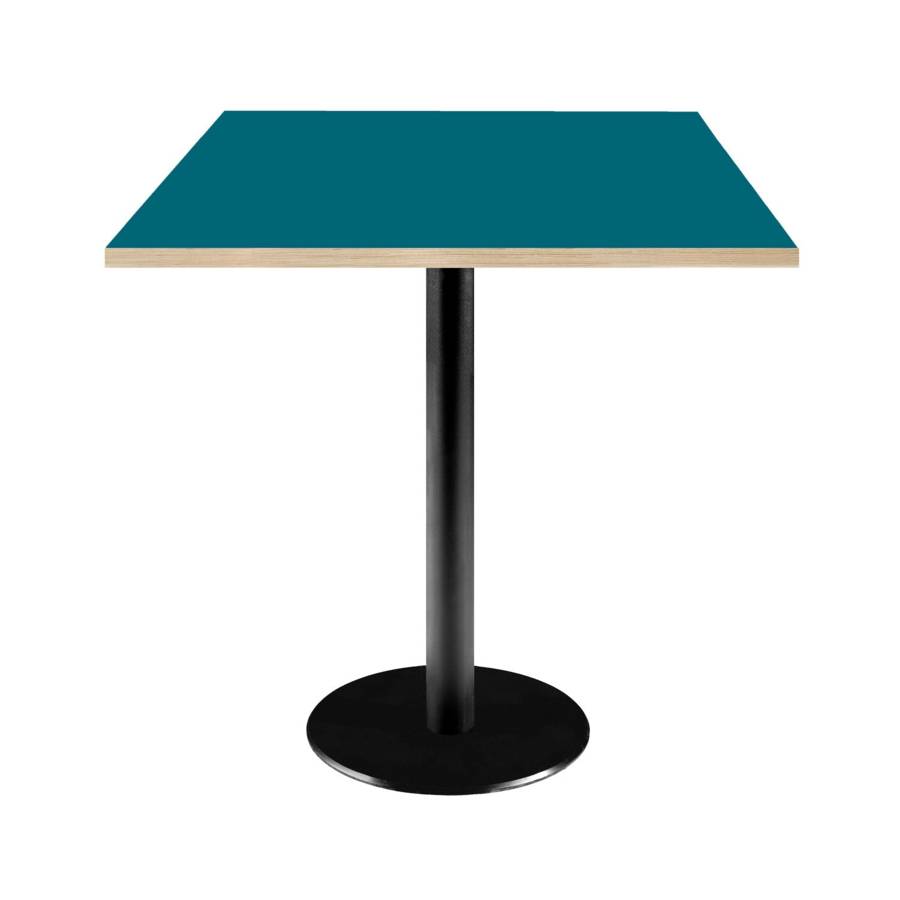 Table pied noir 70x70cm bleu prusse chants bois | mobilier collectivités