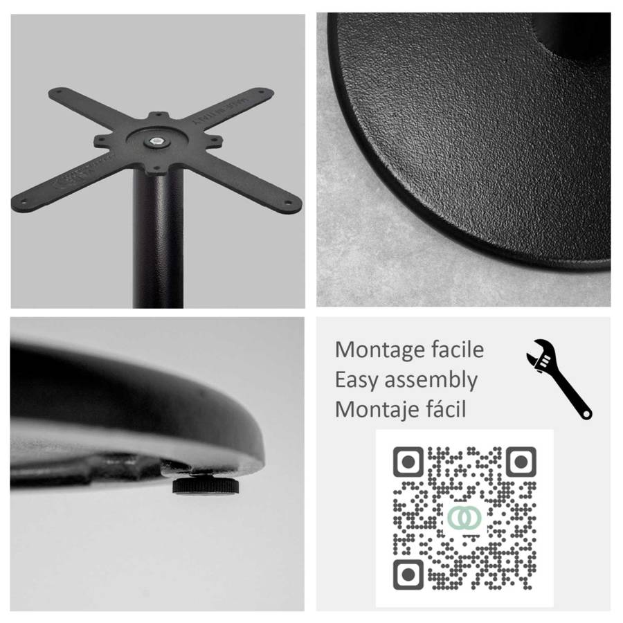 Une table RestooTab est livrée avec la visserie et les instructions de montage. Le plateau est pré-percé avec des inserts afin de garantir une excellente fixation avec le pied. Le montage est simple est peut être rapidement réalisé par une personne seule. Voir la notice de montage sur cette fiche produit.