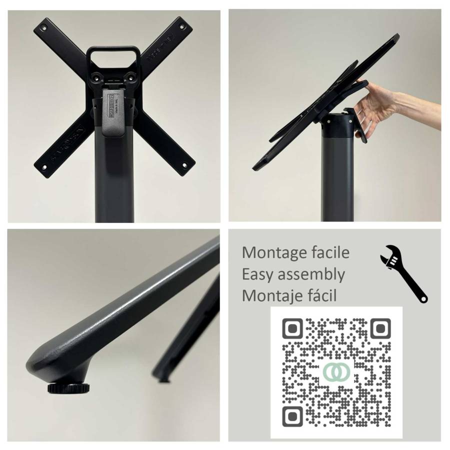 • Matériau : plateau en Compact HPL, épaisseur 1cm, avec placage stratifié très résistant sur les 2 faces - piétement rabattable en aluminium thermolaqué