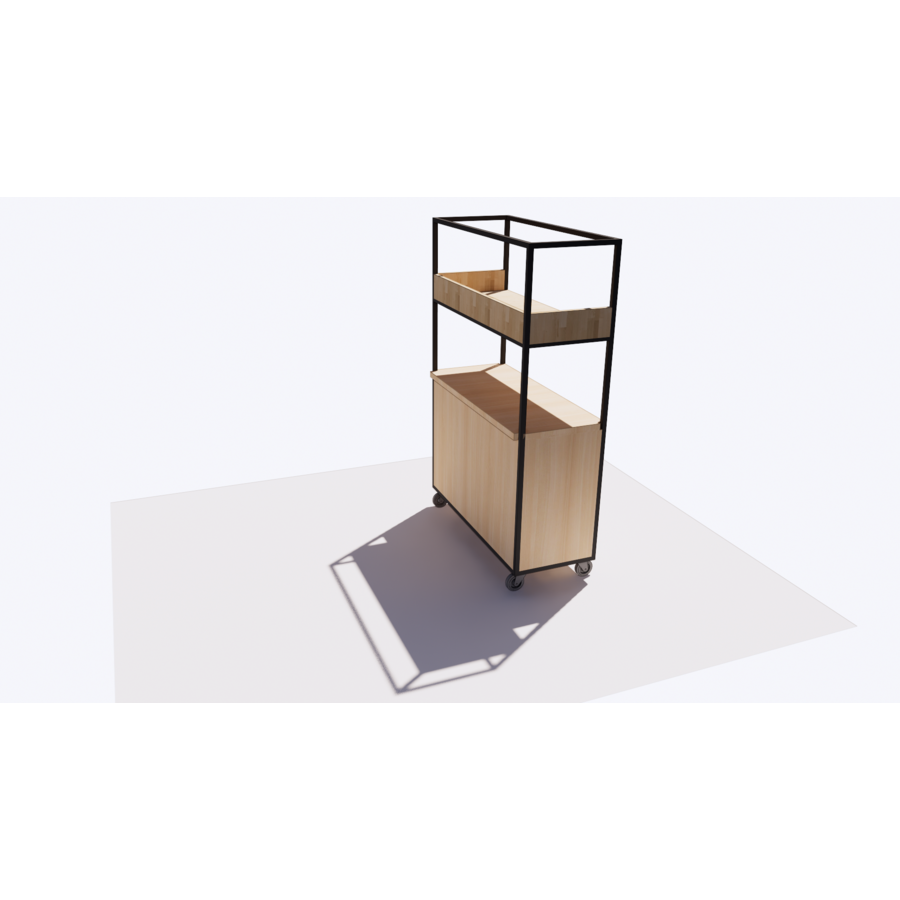 Bibliothèque-cloison sur roulettes en métal noir et bois coloris naturel (autres coloris nous contacter) -