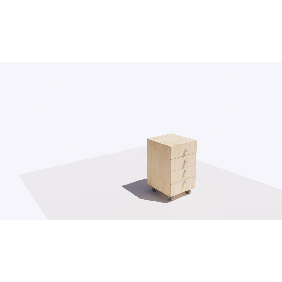 Bloc 4 tiroirs bois coloris naturel sur roulettes -