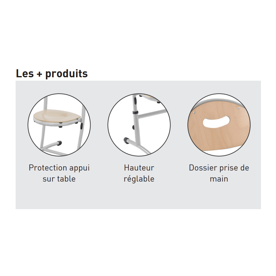 Idéale pour les espaces éducatifs, professionnels ou domestiques, elle est conçue avec une assise et un dossier en bois multiplis finition Blueprotech®, offrant durabilité et élégance. Son dossier ergonomique intègre une prise de main pour faciliter son déplacement. Réglable en hauteur et dotée d’un piètement robuste en...
