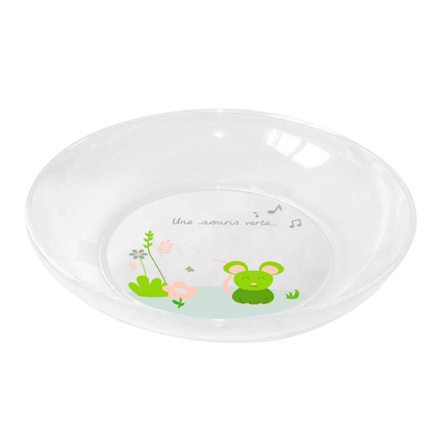 DESIGN : nos pièces de vaisselle en copolyester sont transparentes et colorées pour un repas vitaminé. Notre décor Souris verte offre à bébé un moment ludique et délicat.