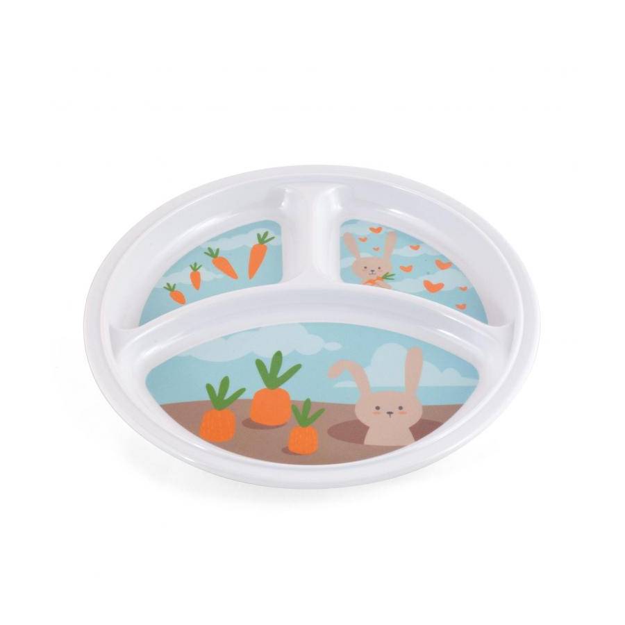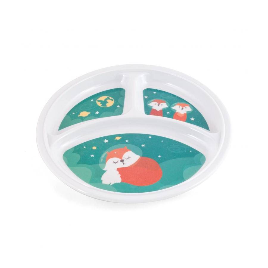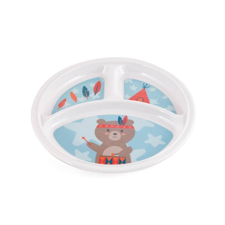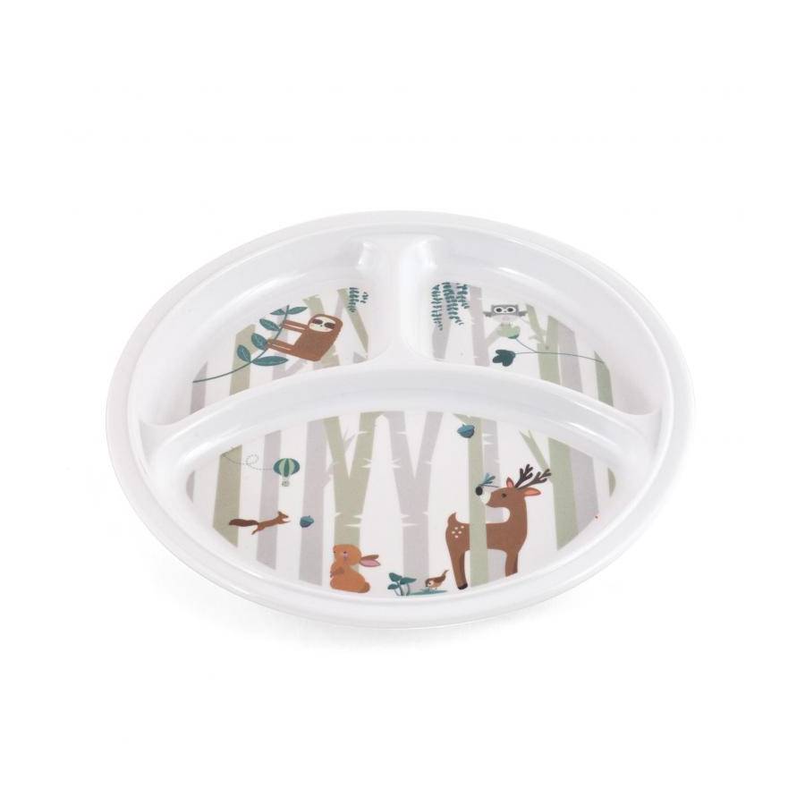 Assiette ronde en mélamine à 3 compartiments décorée ou couleur