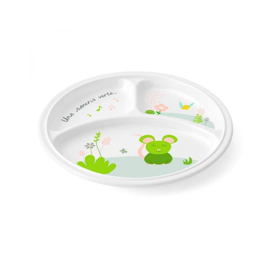 Assiette ronde à 3 compartiments 5 décors ou 5 couleurs au choix