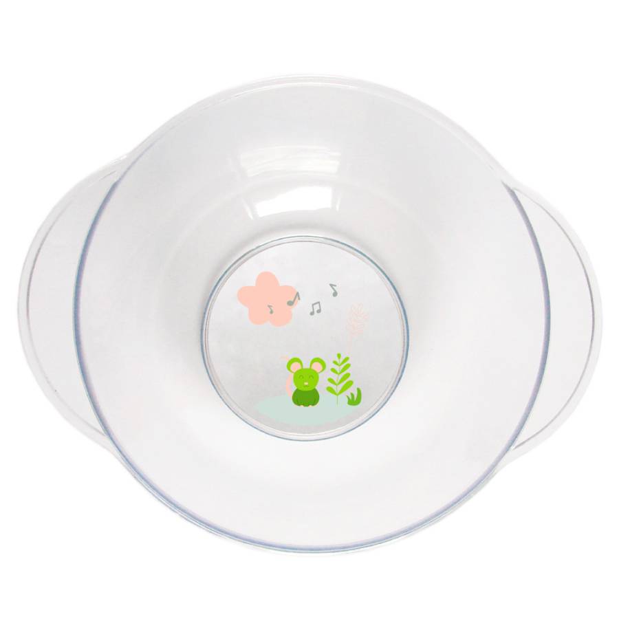 DESIGN : nos pièces de vaisselle en copolyester sont transparentes et colorées pour un repas vitaminé. Notre décor Souris verte offre à bébé un moment ludique et délicat.