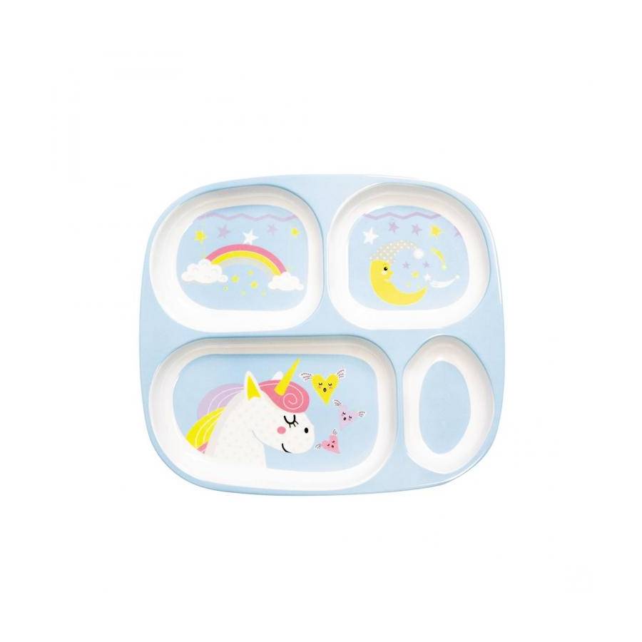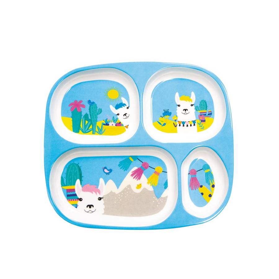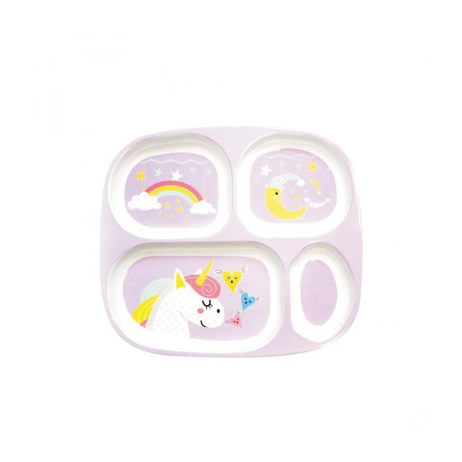 Plateau repas 4 compartiments décor Lama/Licorne - Lot de 3 minimum
