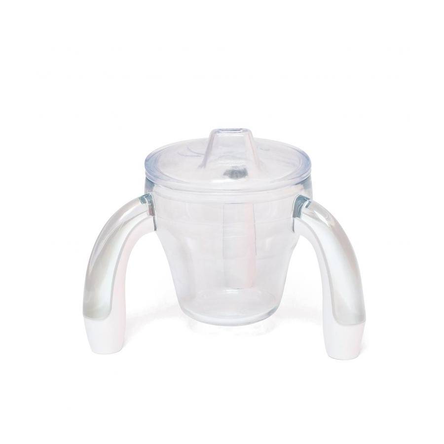 COLORÉE : la tasse avec poignées tripode à bec se décline en 6 coloris neutres ou chatoyants pour le plaisir des yeux des tout petits.
