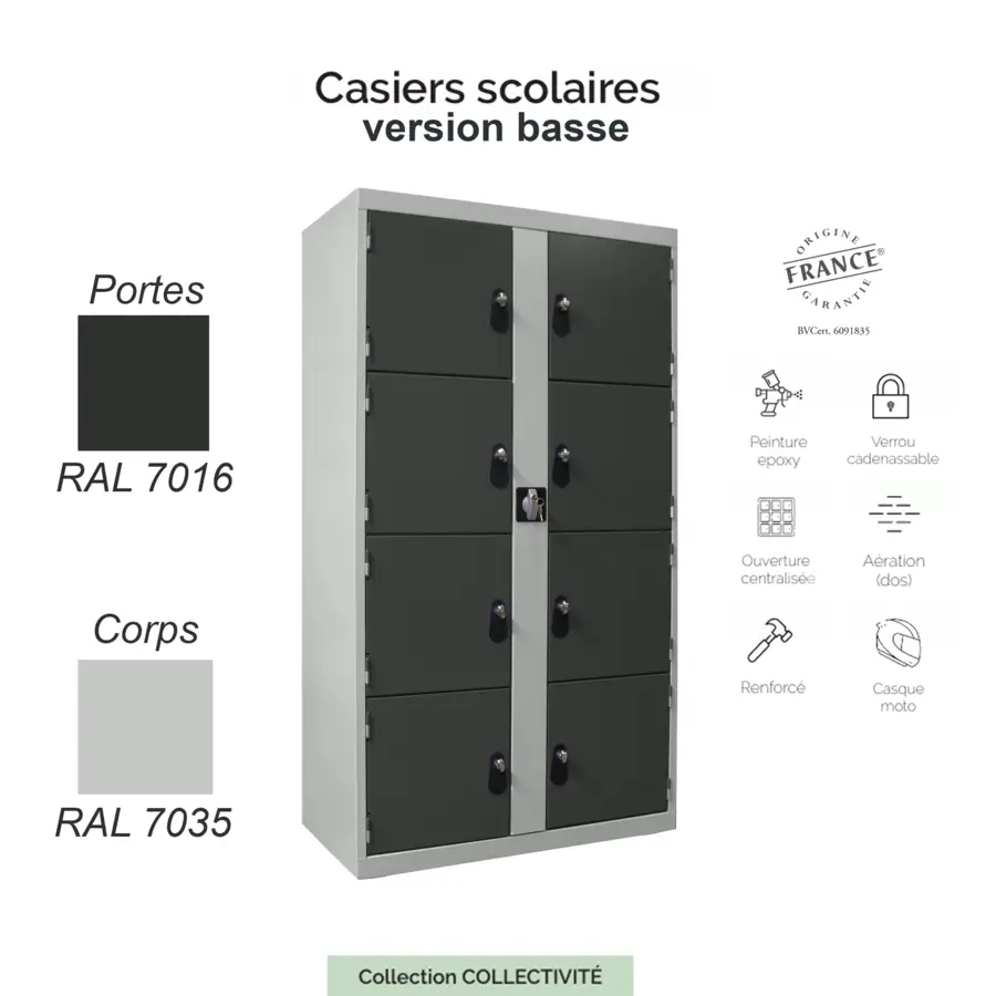 Bloc 8 Casiers Scolaires Visitables – Version Basse