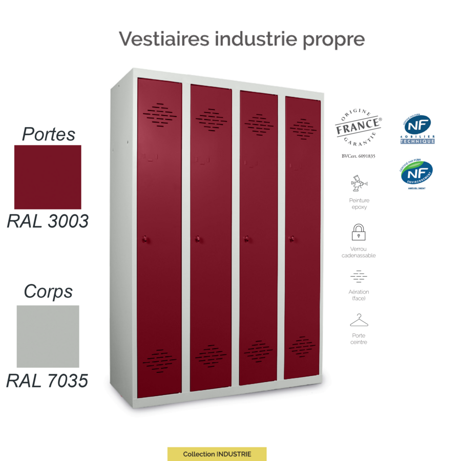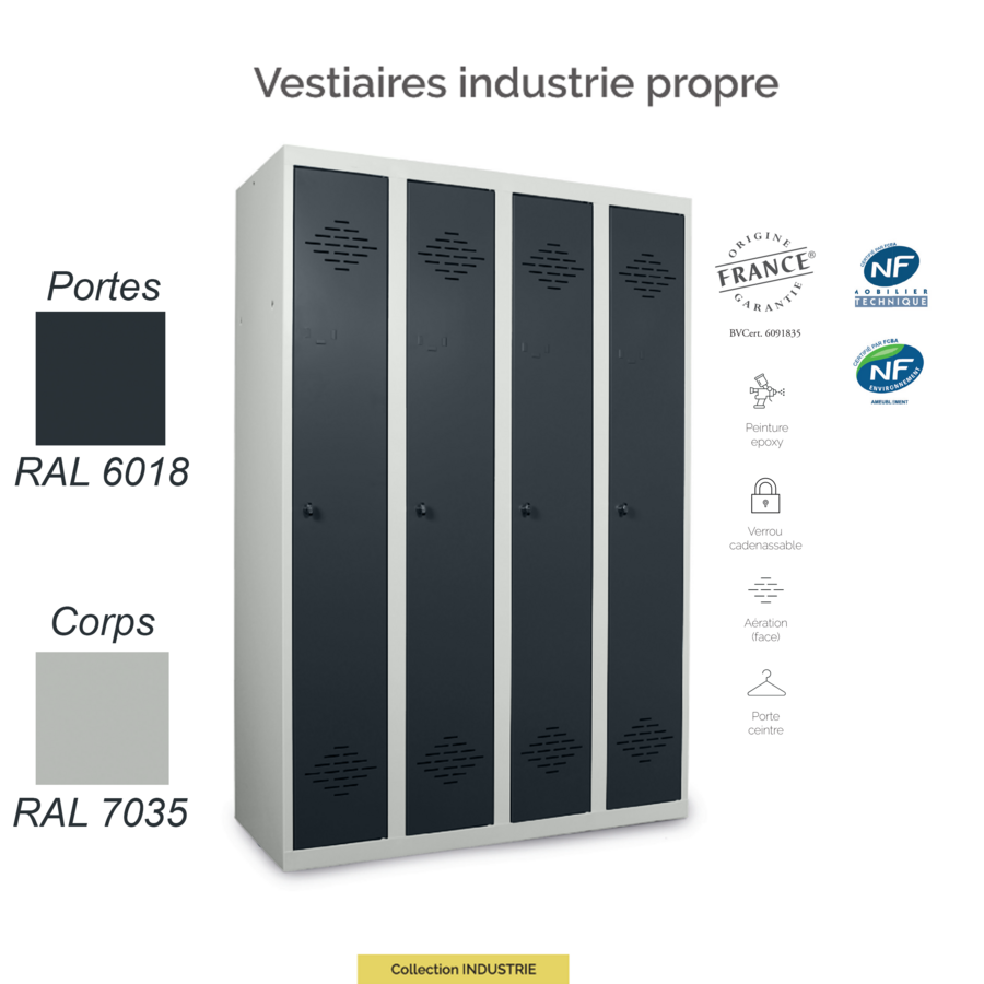 Vestiaire Industrie Propre 4 Cases | Sécurisé & Conforme aux Normes NF