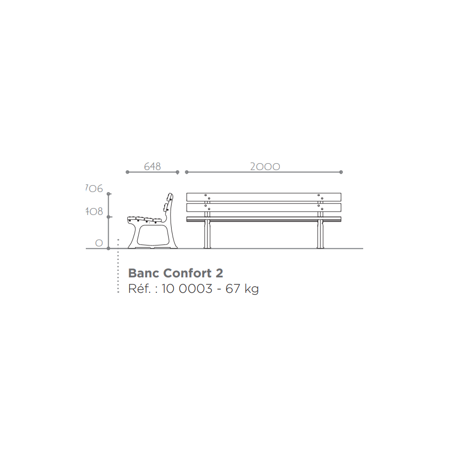 Le piètement en fonte du banc Confort 2 offre une résistance et une longévité inédites à ce mobilier. La garniture en bois apporte chaleur et harmonie esthétique à l'objet.