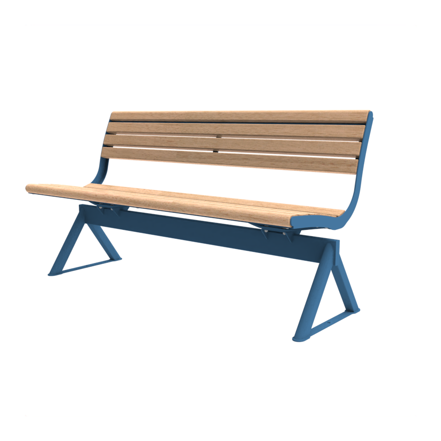 Les structures sont composées de plats d’extrémité et de renforts sur lesquels sont fixés des carrelets en bois. Les piètements sont composés d’une traverse support de section rectangulaire