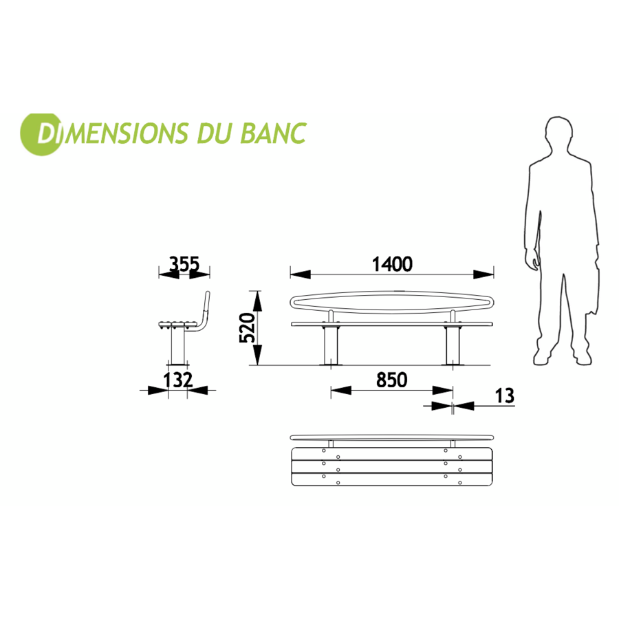 L'assise du banc est composée de 3 lattes de bois issu de forêts gérées durablement qualifiées PEFC ou FSC