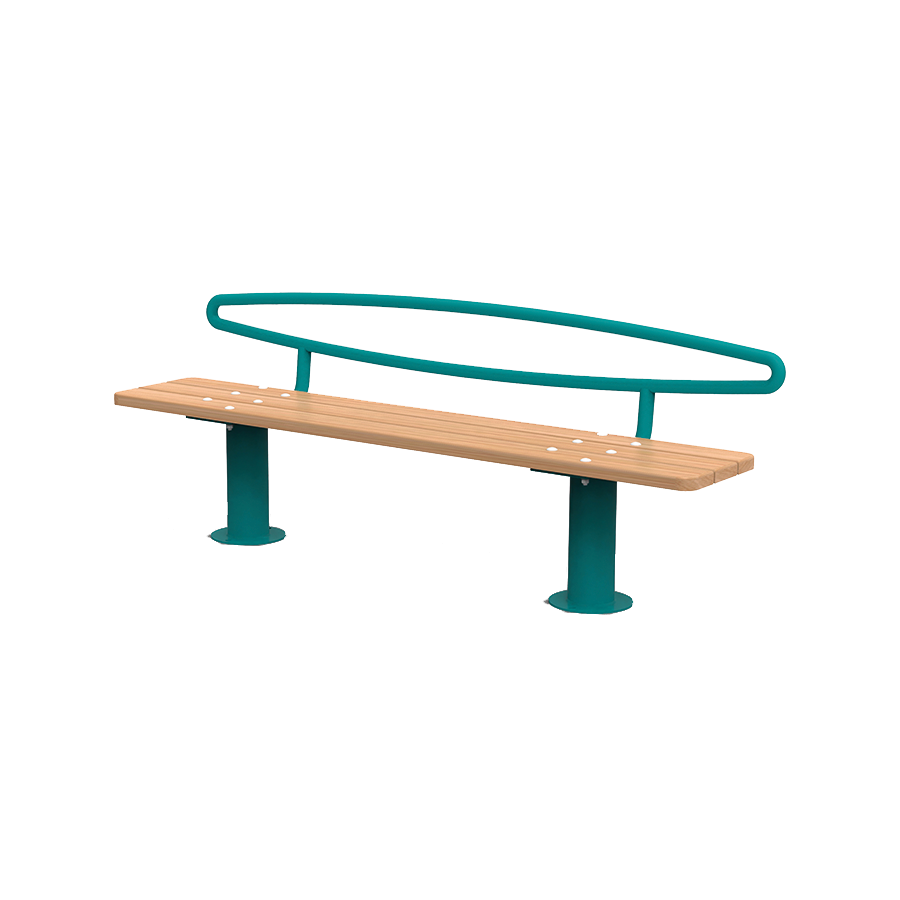 Les piètements du banc sont en acier zingué et sont formés d'un tube de diametre 89mm et d'une platine de scellement
