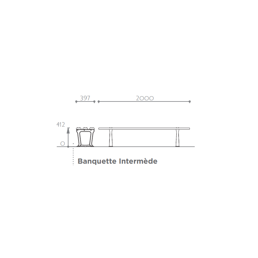 Le piètement en fonte de la banquette Intermède offre une résistance et une longévité inédites à ce mobilier. La garniture en bois apporte chaleur et harmonie esthétique à l'objet. Elle s'associe parfaitement au banc Confort 1 et Confort 2.