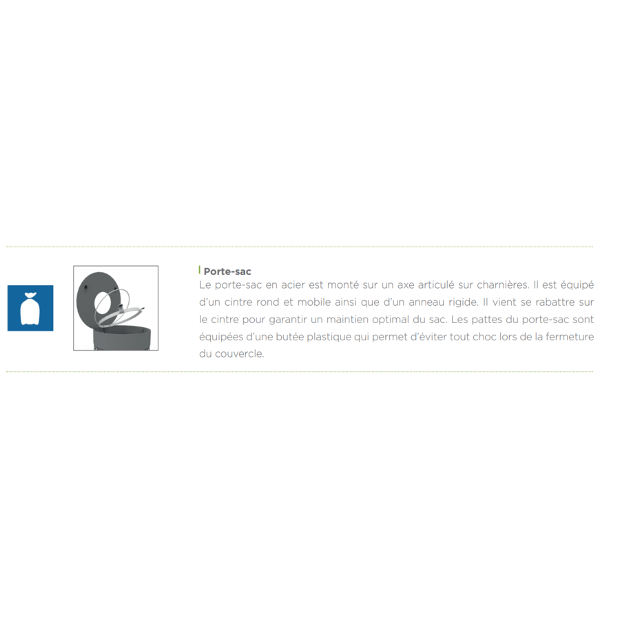 Corbeille avec porte-sac 95 litres : le porte-sac est en acier.
