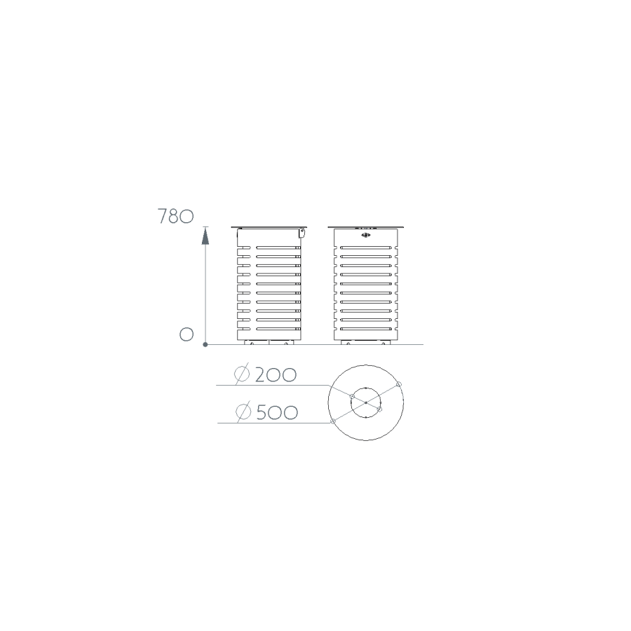 Le couvercle est en acier de diamètre 500 mm et d’épaisseur 5 mm. Il est articulé par un axe en acier inoxydable monté sur charnières. Lors de sa fermeture, le couvercle est amorti par 2 butées en caoutchouc.