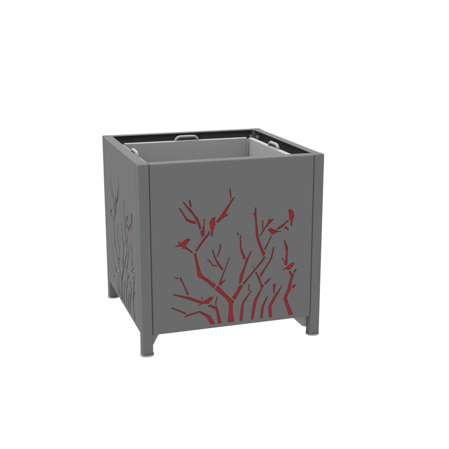 Jardinière Optima Nature 350 L est en acier peint, orné d'un motif nature, découpé dans la matière. Une plaque de contraste en acier vient rehausser le motif. Le design sobre et épuré de la jardinière Nature s'intègre dans tous types d'environnement.