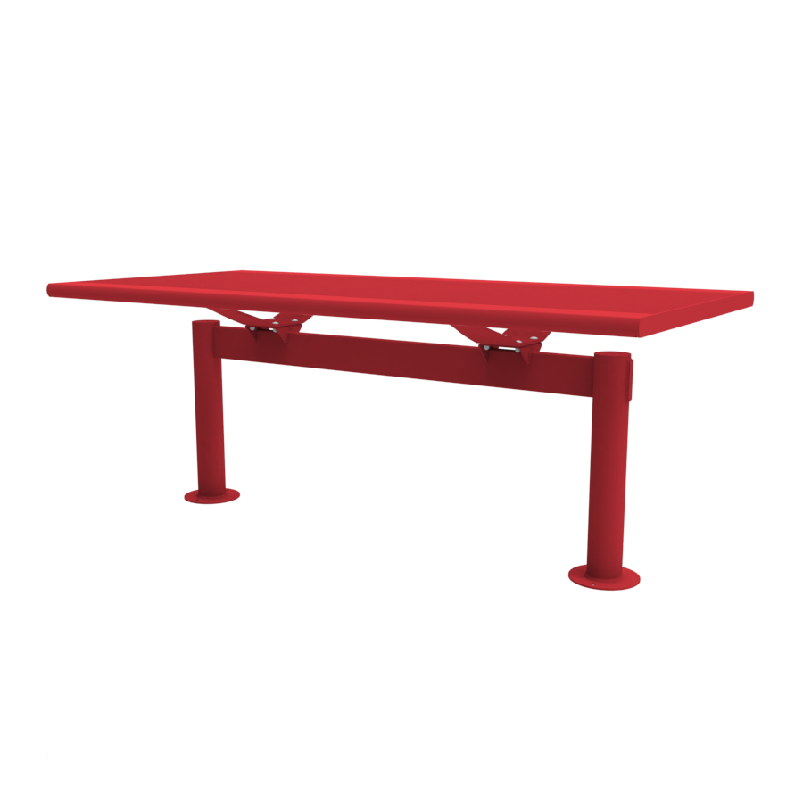 La table d'extérieur de l‘ensemble pique-nique TANGO CITY est composée de piètements en acier.