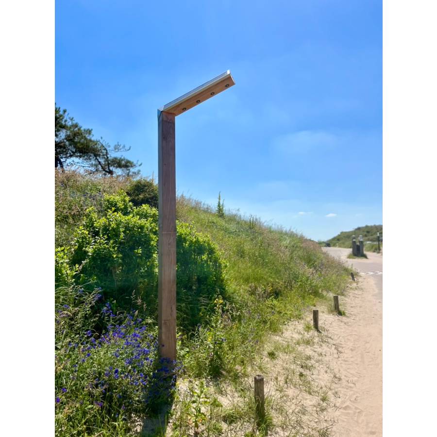 Le bois est doté d'une protection anti-pourriture, et notre module solaire est fabriqué à partir de verre renforcé, ultra-résistant aux chocs, permettant à nos éclairages de durer dans le temps.