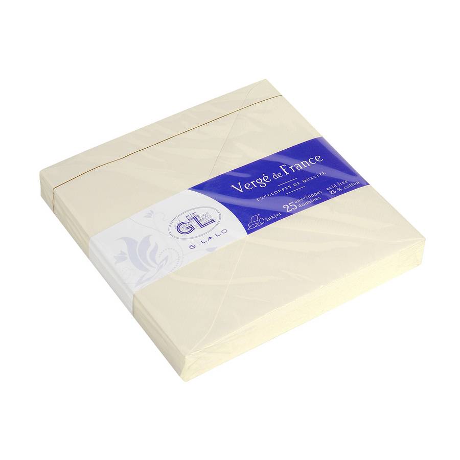 25 enveloppes Vergé doublées 140x140mm gommées Ivoire