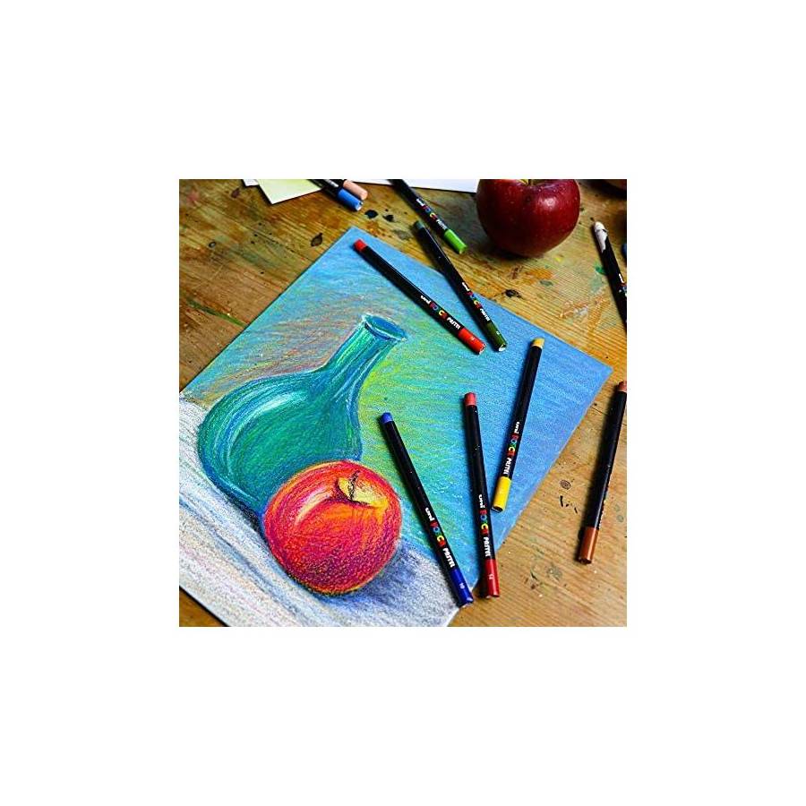 Voir plusBâtonnet de pastel POSCA Pastel KPA100 M Marron Le pastel cire et huile de Posca est idéal pour la réalisation d'esquisses, d'illustrations abouties, pour de la décoration ou encore pour rehausser des créations à base d'acrylique ou de marqueurs peinture Posca. Fidèles à l'esprit Posca, ces nouveaux Posca Pastels sont accessibles aux amateurs comme aux professionnels et ils s'appliquent sur de nombreux supports : le papier, le calque, le bois, le métal, le carton, le cuir, le verre, le plastique, la toile (claire) et les matières minérales. La finesse des bâtonnets de pastel, inédite pour un pastel, facilite leur prise en main, simplifie le taillage et garantit un tracé précis pour vos dessins. Leur composition hybride qui associe la cire et l'huile lui confère de nombreux avantages : Ils sont conçus à base de pigments naturels, de cire et d'huile. Ils offrent un rendu vif et lumineux des couleurs. Peu salissant, ces bâtonnets laissent peu de dépôts et permet de travailler cette technique sans excès de matières. Ils combinent une grande intensité chromatique grâce à leur forte concentration en pigments et une grande précision des effets dégradés. Les pigments se fixent très rapidement sur le support, sans bavures, avec un aspect lisse, mat et sec.