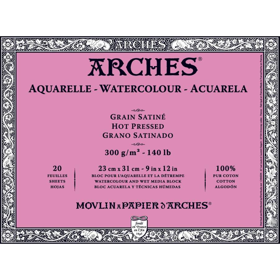 ARCHES® Aquarelle • Fabriqué à l'ancienne sur forme ronde, il présente un grain naturel et harmonieux. Grâce à ce procédé, les fibres sont réparties de façon homogène, le papier se détend uniformément lorsqu'il est mouillé. • Sa composition 100 % coton, fibres longues, donne au papier sa beauté, une blancheur naturelle permanente, un toucher inimitable et assure sa résistance. L'OFFRE BEAUX ARTS AQUARELLE PROFESSIONNEL DU GROUPE FILA • Une exclusivité ARCHES® : le...