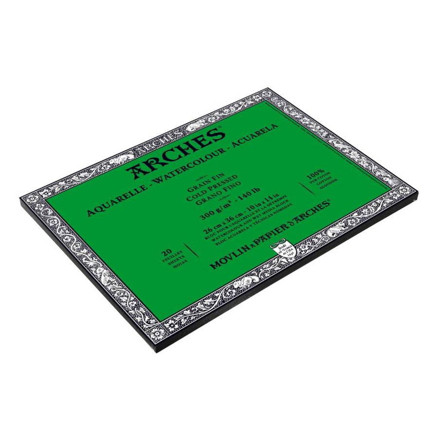 ARCHES® Aquarelle • Fabriqué à l'ancienne sur forme ronde, il présente un grain naturel et harmonieux. Grâce à ce procédé, les fibres sont réparties de façon homogène, le papier se détend uniformément lorsqu'il est mouillé. • Sa composition 100 % coton, fibres longues, donne au papier sa beauté, une blancheur naturelle permanente, un toucher inimitable et assure sa résistance. L'OFFRE BEAUX ARTS AQUARELLE PROFESSIONNEL DU GROUPE FILA • Une exclusivité ARCHES® : le...