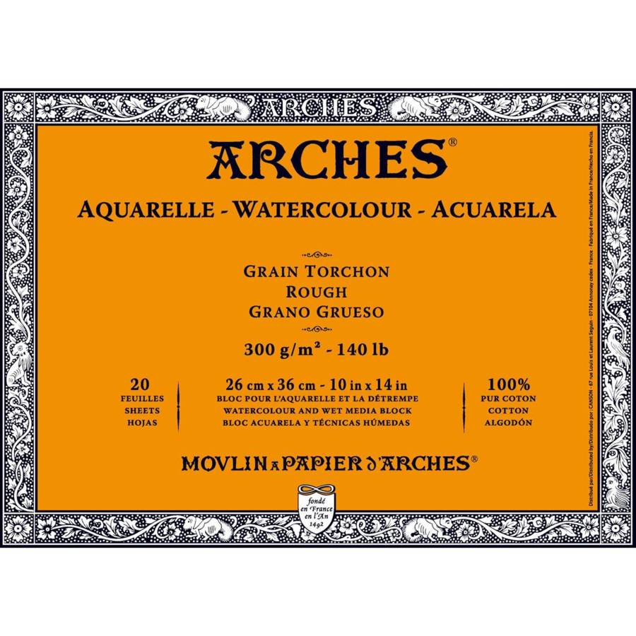 ARCHES® Aquarelle • Fabriqué à l'ancienne sur forme ronde, il présente un grain naturel et harmonieux. Grâce à ce procédé, les fibres sont réparties de façon homogène, le papier se détend uniformément lorsqu'il est mouillé. • Sa composition 100 % coton, fibres longues, donne au papier sa beauté, une blancheur naturelle permanente, un toucher inimitable et assure sa résistance. L'OFFRE BEAUX ARTS AQUARELLE PROFESSIONNEL DU GROUPE FILA • Une exclusivité ARCHES® : le...