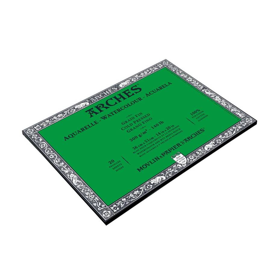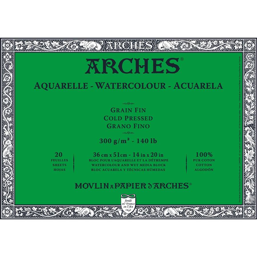 ARCHES® Aquarelle • Fabriqué à l'ancienne sur forme ronde, il présente un grain naturel et harmonieux. Grâce à ce procédé, les fibres sont réparties de façon homogène, le papier se détend uniformément lorsqu'il est mouillé. • Sa composition 100 % coton, fibres longues, donne au papier sa beauté, une blancheur naturelle permanente, un toucher inimitable et assure sa résistance. L'OFFRE BEAUX ARTS AQUARELLE PROFESSIONNEL DU GROUPE FILA • Une exclusivité ARCHES® : le...