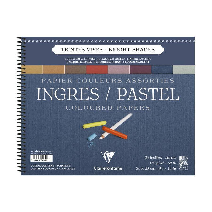 Bloc 25 feuilles papier Ingres spirale 24x30 130g couleurs vives assorties