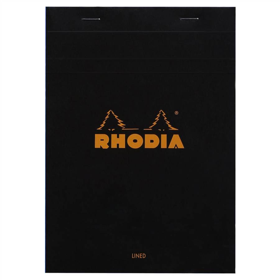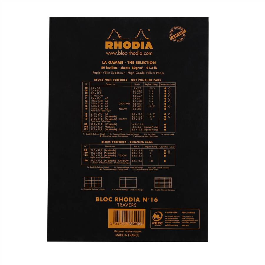 Bloc agrafé Rhodia N°16 14,8x21 cm 80 feuillets ligné avec marge 80g - Noir