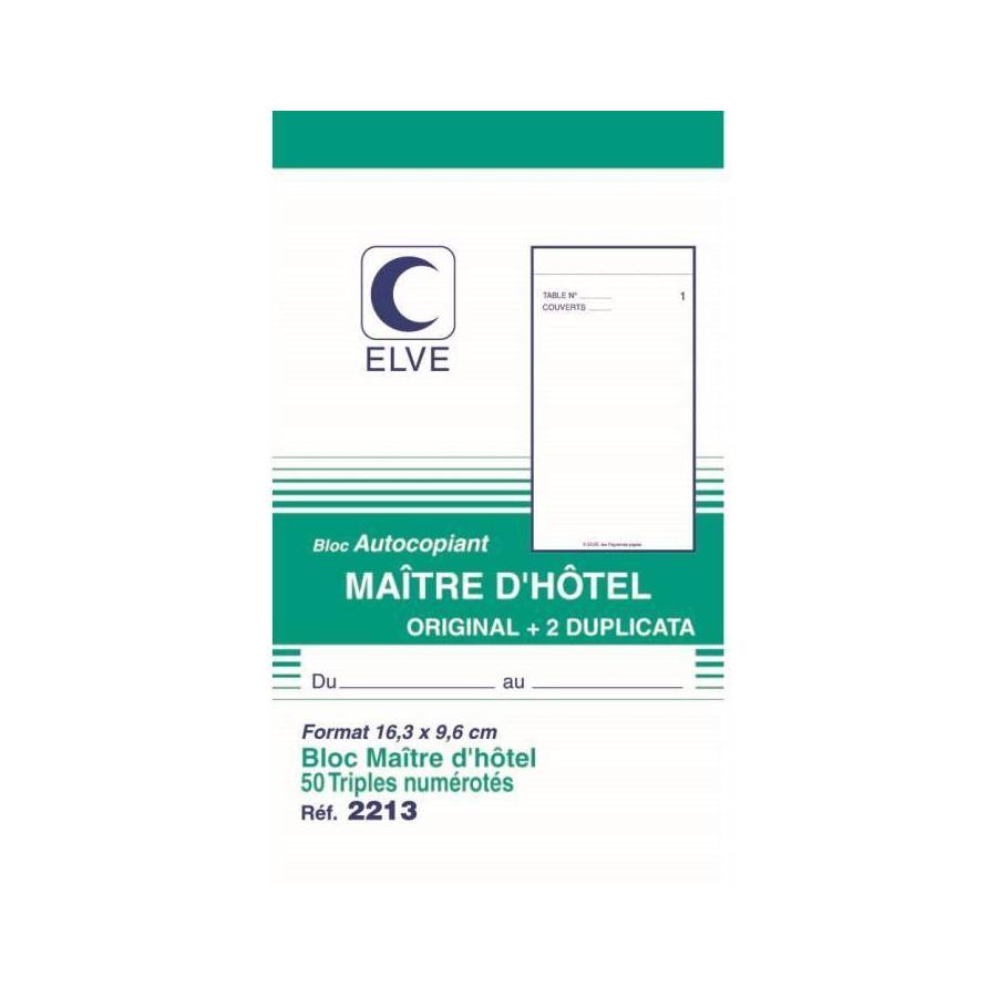 Elve - Bloc Autcopiant MAITRE D'HOTEL 165 x 96 mm 50 Feuillets Tripli