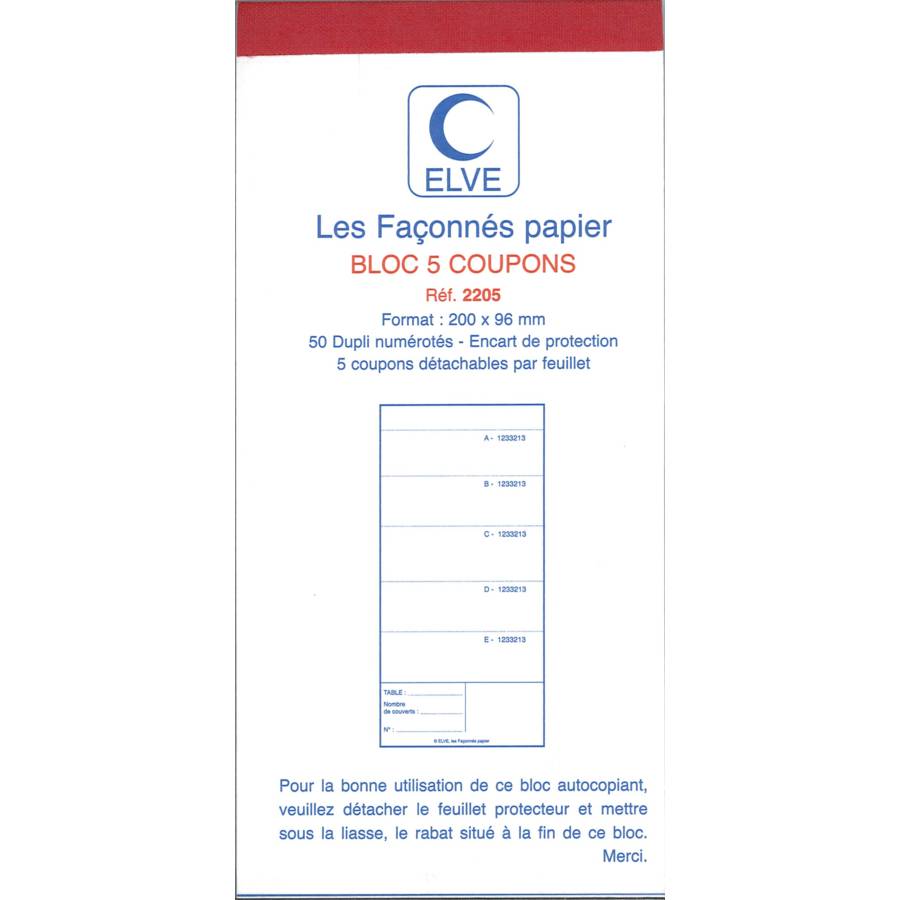 BLOC brasserie 5 COUPONS 96X200 50 Feuillets Dupli Lot de 10