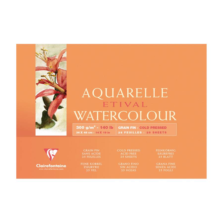Voir plusETIVAL PAPIER 100% CELLULOSE 300g : ce papier aquarelle blanc est de qualité étude. Sa couleur blanc naturel est obtenue sans azurant optique. GRAIN FIN : ce papier au grain fin est très facile à utiliser. Sa surface polyvalente, régulière et subtile, convient à une majorité de techniques. Il est parfaitement adapté aux débutants ou aux utilisateurs occasionnels. AQUARELLE : ce papier est dédié aux techniques humides comme l'aquarelle. Grâce à son fort grammage, il possède une excellente capacité d'absorption de l'eau. Il s'adapte très bien aux travaux d'étude et permet des techniques très mouillées. FORMAT 36x48 cm : ce bloc encollé 4 côtés permet au papier de rester tendu pendant la réalisation de l'aquarelle, ceci pour éviter qu'il ne gondole. Ce format est très pratique pour la peinture en extérieur puisqu'il n'est pas nécessaire de fixer la feuille à un support. Une fois sec, vous pourrez détacher votre aquarelle. SANS ACIDE : ce papier est sans acide et de pH neutre pour une parfaite conservation des aquarelles dans le temps. Les couleurs garderont tout leur éclat.