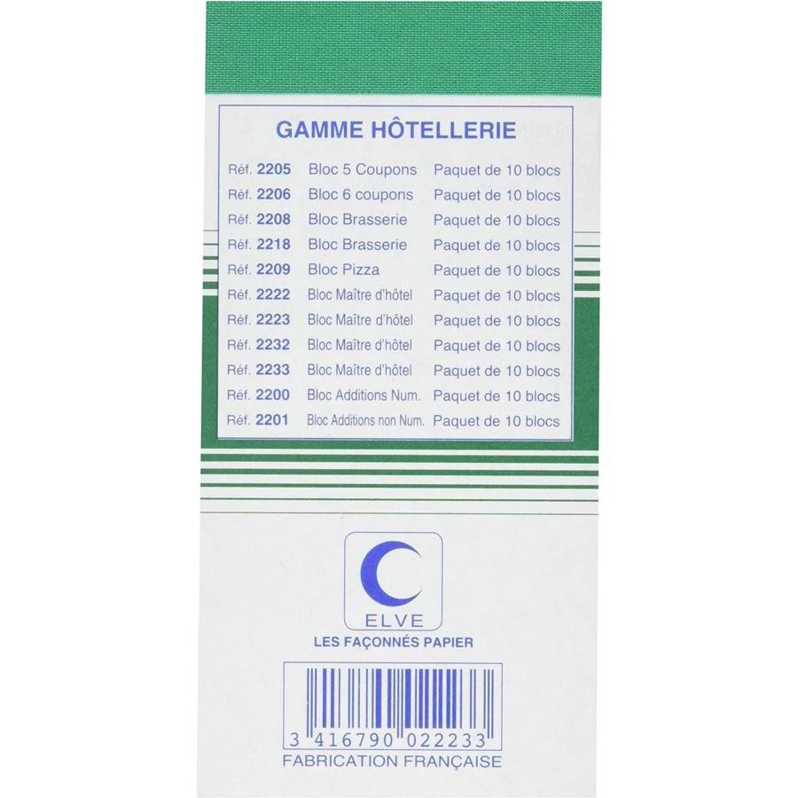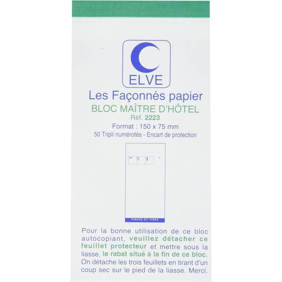 Bloc Maitre D'hotel 75x150mm 50 Feuillets Autocopiant Tripli Détachable Fabrication 100% Française