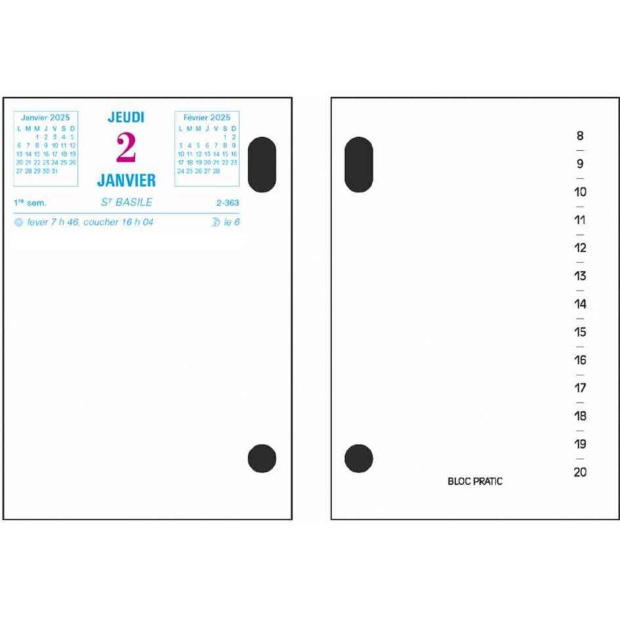 Découvrez le charme vintage de cet accessoire de bureau : la recharge se pose sur un socle en bois ou en plastique. Page de gauche avec la date et les calendriers des mois en cours et suivant. Page de droite pour noter les rendez-vous de 8h à 20h. Impression sur papier blanc Clairefontaine : qualité et douceur d'écriture. Certifications : PEFC (fibres de papier issues de forêts gérées durablement) - Imprim'vert (impression respectueuse de l'environnement).