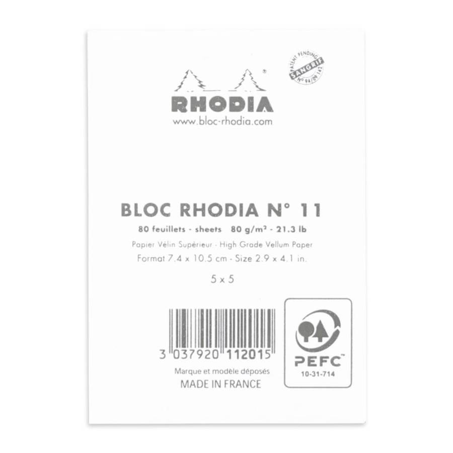 RHODIA Bloc agrafé No. 11, format A7, quadrillé 5x5, blanc