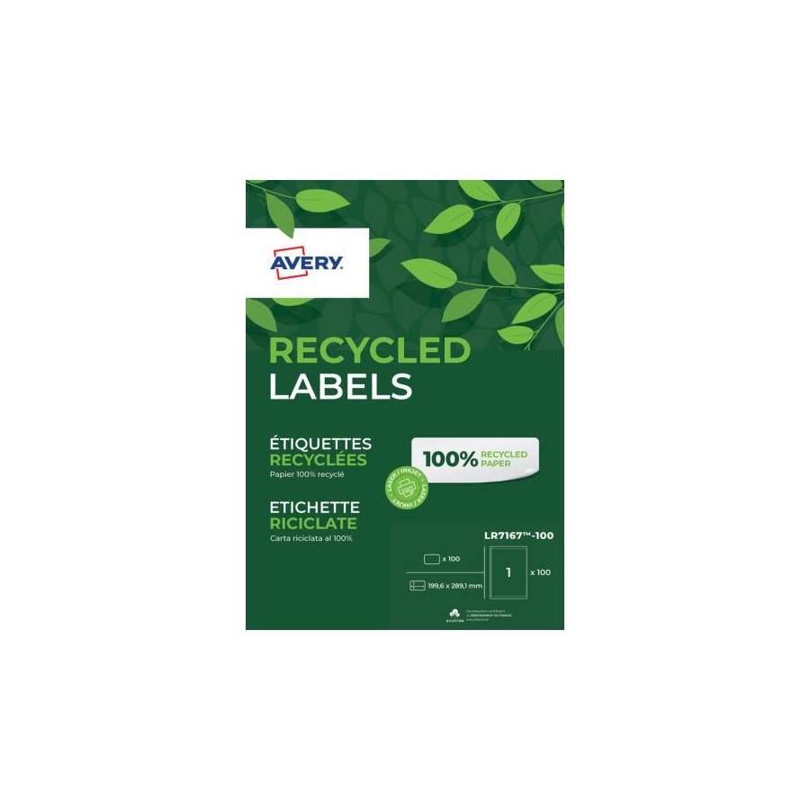Etiquettes et support 100% recyclés Emballage recyclé, adhésif écologique à base d'eau, étiquettes fabriquées sans chlore Modèles et logiciels GRATUITS sur www.avery.fr Garanties sans bourrage - Gain de temps pour détacher vos étiquettes grâce à la technologie « Facile à décoller de la planche»