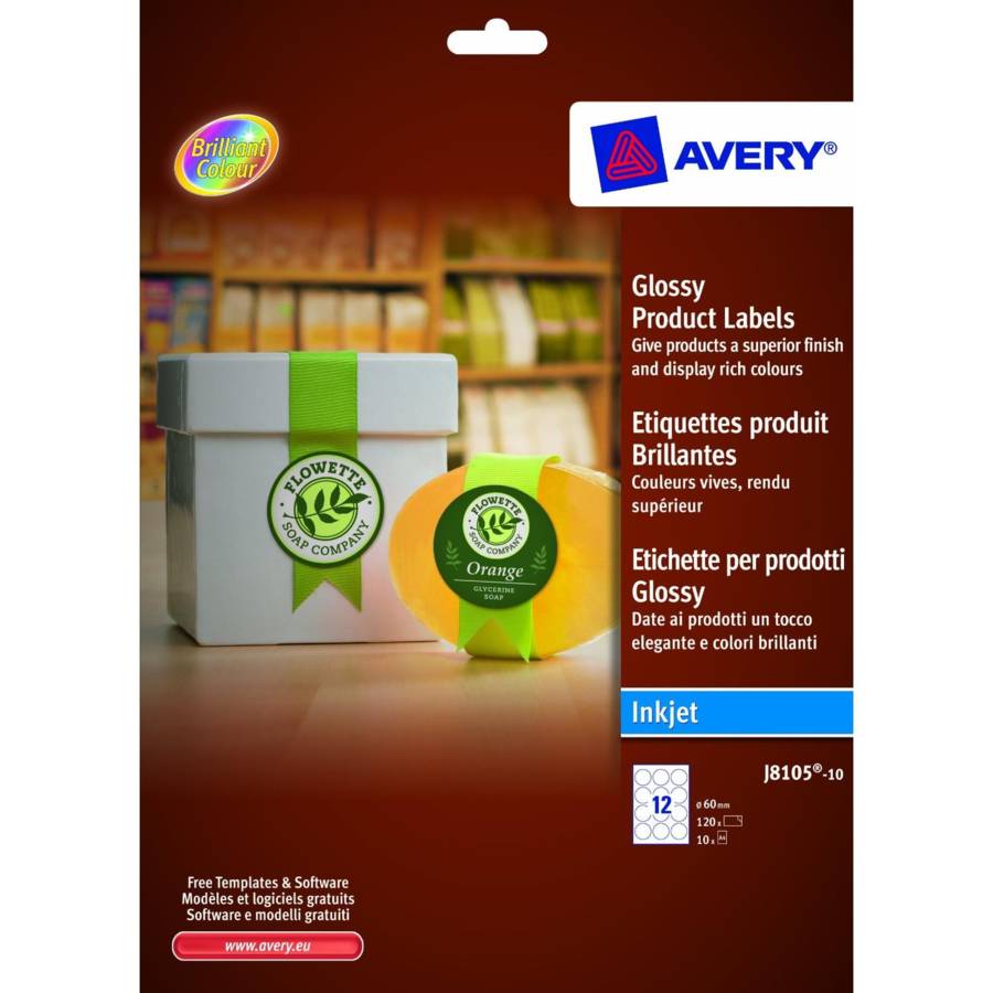 Avec les étiquettes brillantes Avery, vous obtiendrez un rendu haut de gamme. Ces étiquettes jet d'encre permettent d'obtenir des couleurs brillantes et des textes nets. Ces étiquettes rondes sont imprimables à bords perdus. Les modèles et logiciels gratuits Avery vous permettront de concevoir un design personnalisé en un clin d'œil.Les étiquettes emballage Avery sont disponibles dans une large gamme de formes et de matières pour vous permettre d'étiqueter toutes sortes...