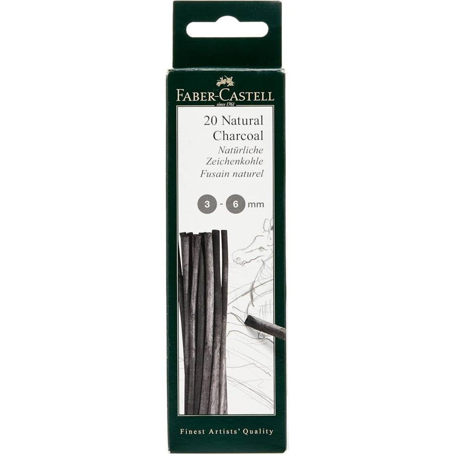 Pour le dessin, le fusain est le matériel le plus ancien du monde. Il se laisse très facilement étaler et estomper, il peut être corrigé facilement et il peut être recouvert de peinture plusieurs fois. Déjà les anciens maîtres étaient fascinés par leur couleur bleuâtre. Les crayons fusains font preuve d'un noir beaucoup plus foncé. Le fusain compressé, mélangé avec de la suie et de l'argile, donne une couleur noir foncé au crayon fusain et permet la production de différentes degrés de dureté. - Fusain naturel Pitt (diamètre: 3-6 mm) - Sans graisse ni huile - Traitnoir-bleu - Disponible à l'unité, en blisters et en sets