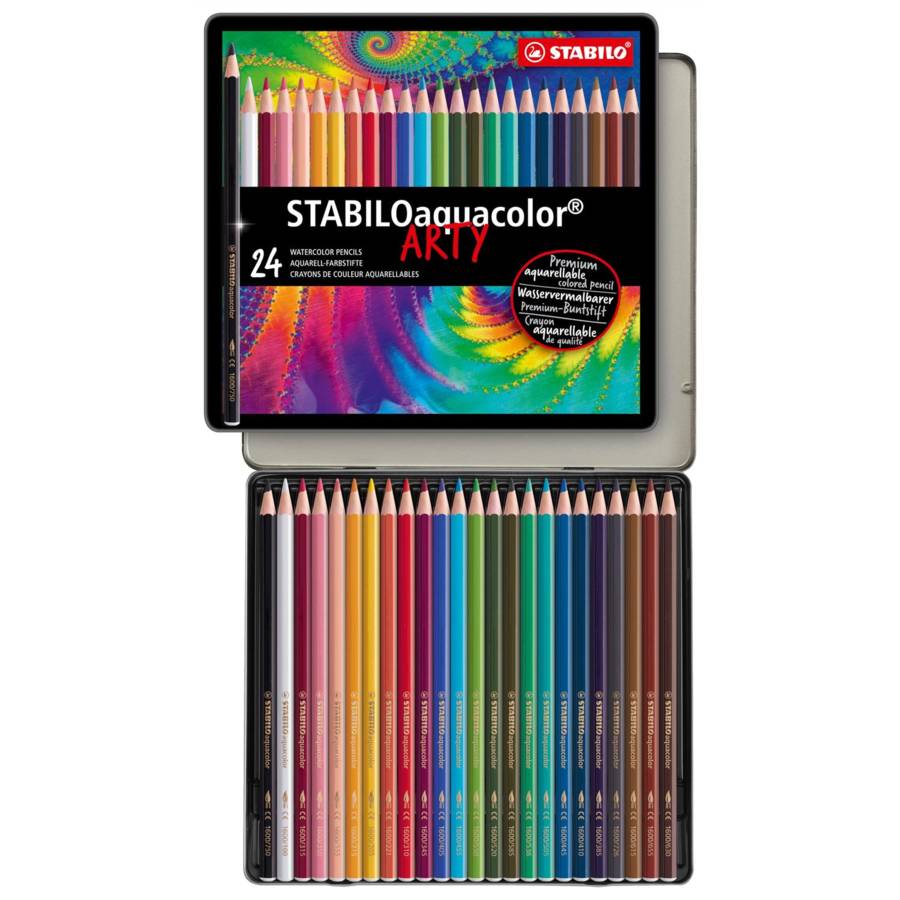 Boîte métal de 24 crayons de couleur Aquarellable AQUACOLOR ARTY Mine 2,8 mm